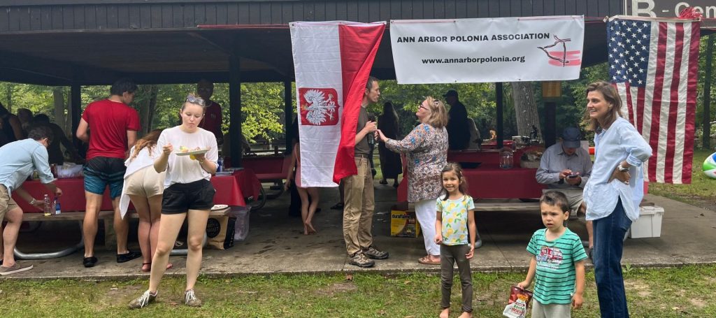 On sunny Sunday afternoon, the Ann Arbor Polonia Association hosted our annual 2023 summer picnic. Members and a few newcomers alike gathered together to celebrate the fading summer season. The air was filled with excitement as we looked forward to indulging in a delightful array of traditional Polish and other potluck dishes. The picnic shelter by the Huron RIver radiated a nice atmosphere. The tantalizing aroma of grilled kielbasa and kaszanka permeated the air. We are thankful to Adam Filipiak for providing the grilling. As members of our community were catching up with their recent updates ,a mystery basket raffle was held. The winning ticket was drawn by Marynia and the fortunate recipient turned out to be a young woman named Olivia. The raffle proceeds will be dedicated to supporting the AAPA funds. As the picnic drew to a close, we couldn’t help but reflect on the incredible sense of community that the Ann Arbor Polonia Association fosters. It is through events like these that we forge friendships and create memories. Our next event is our annual Ognisko, a bonfire, taking place in our usual spot at Brighton Recreational Area on Saturday, September 30th. See you then!